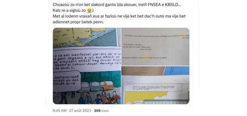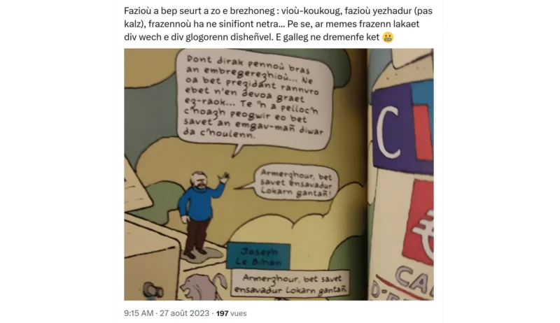 E fin miz Eost o deus embannet lennerien zo ar fazioù o deus gwelet er BD. Mont a reont betek skrivañ war ar rouedad sokial X (ex-twitter) d’an dud tremen hep prenañ al levr !